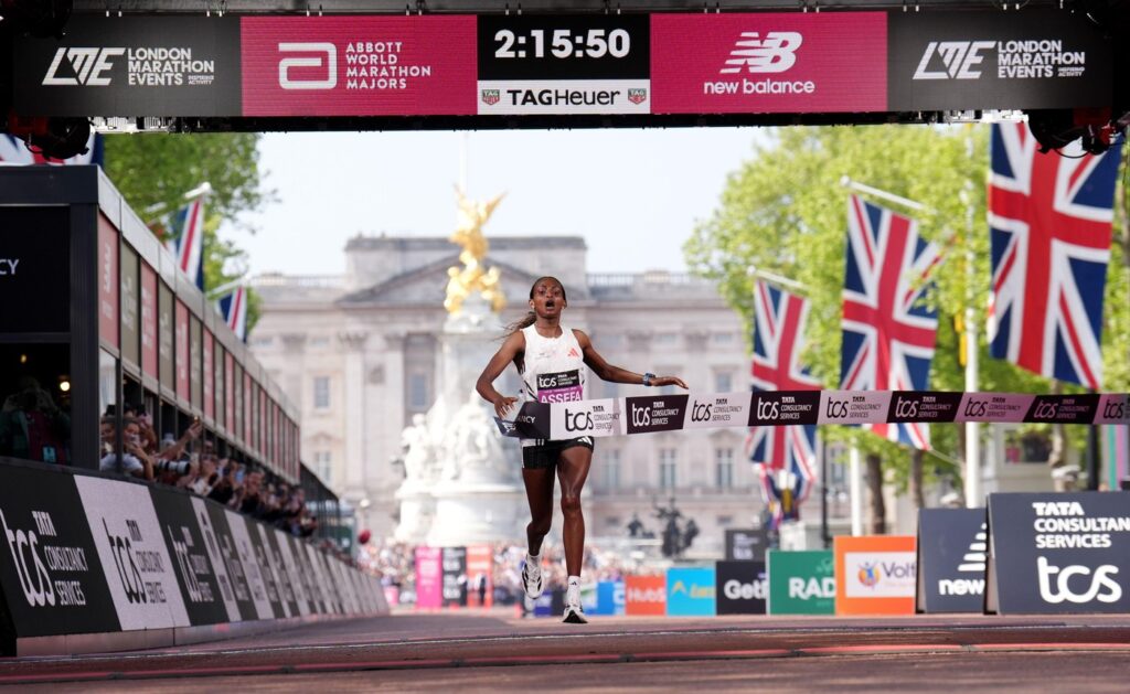 V Londonu so moški in ženske tekli ločeno, med atletinjami pa smo videli svetovni rekord v konkurenci le ženskih tekačic. Z rezultatom 2;15:50 ga je postavila Etiopijka Tigst Assefa, ki je za 26 sekund popravila lanskoletni mejnik Kenijke Peres Jepchirchir, ki je, prav tako v Londonu, tekla 2;16:16.