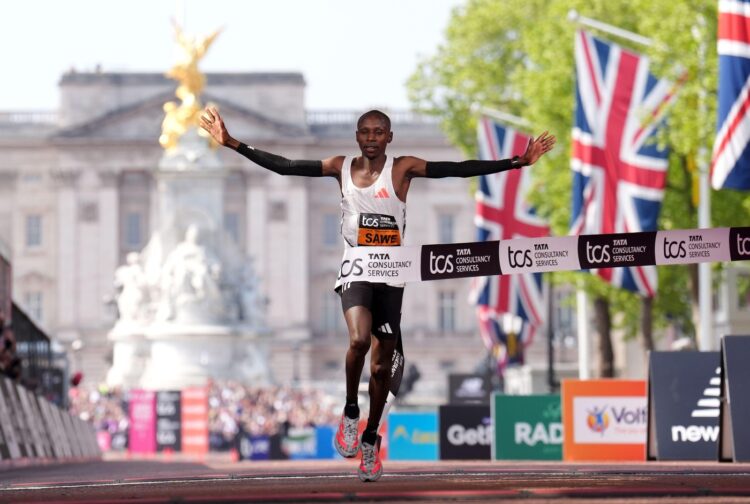 Pri moških je z rezultatom 2;02:27 zmagal Sebastian Sawe in odtekel drugi najboljši izid v zgodovini Londonskega maratona. 30-letni Kenijec, ki je polmaratonski svetovni prvak, je na maratonu tekel šele drugič, potem ko je decembra lani z rezultatom 2;02:05 v Valencii postavil najboljši čas debitanta v zgodovini in se na večni lestvici maratonskih rezultatov.
