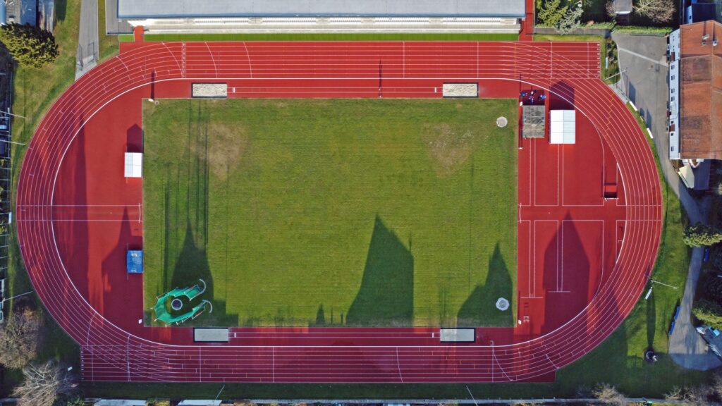 Ima certifikat mednarodne atletske zveze Svetovne atletike, ob osmih stezah pa nudi progo z doskočiščem za skok v daljino in troskok, metališča za met diska, kopja, kladiva in suvanje krogle, tekmovališči z zaletiščema za skok v višino in skok s palico.