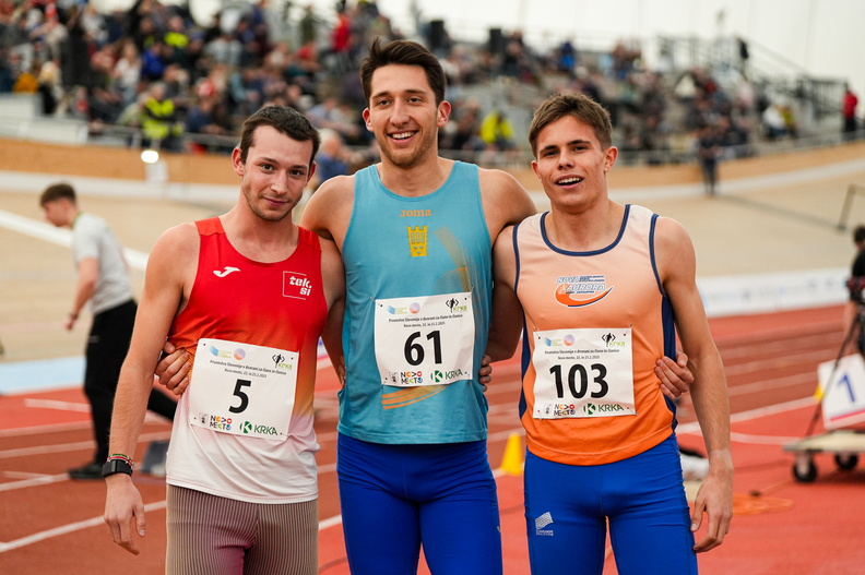 Potem ko je vodil od starta do cilja in odbil napade tekmecev, je z rezultatom 1:48,03 zmagal serijski slovenski prvak Jan Vukovič. Za 12 stotink je prehitel Anžeta Svita Požgaja, ki je odtekel nov osebni rekord. To je uspelo tudi komaj Benjaminu Lakošeljcu, ki je pred dnevi dopolnil šele 18. rojstni dan, tokrat pa tekel 1:49,06, kar je nov dvoranski mladinski rekord.