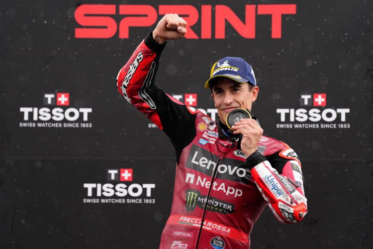Španec Marc Marquez (Ducati) je zmagovalec sprinta na dirki za svetovno prvenstvo za veliko nagrado Španije v razredu motoGP. Dobil je že kvalifikacije v Jerezu, na popoldanski sprinterski dirki, ki so jo zaznamovali tudi naliv in številni padci, pa je ugnal moštvenega sotekmovalca, Italijana Francesca Bagnaio.