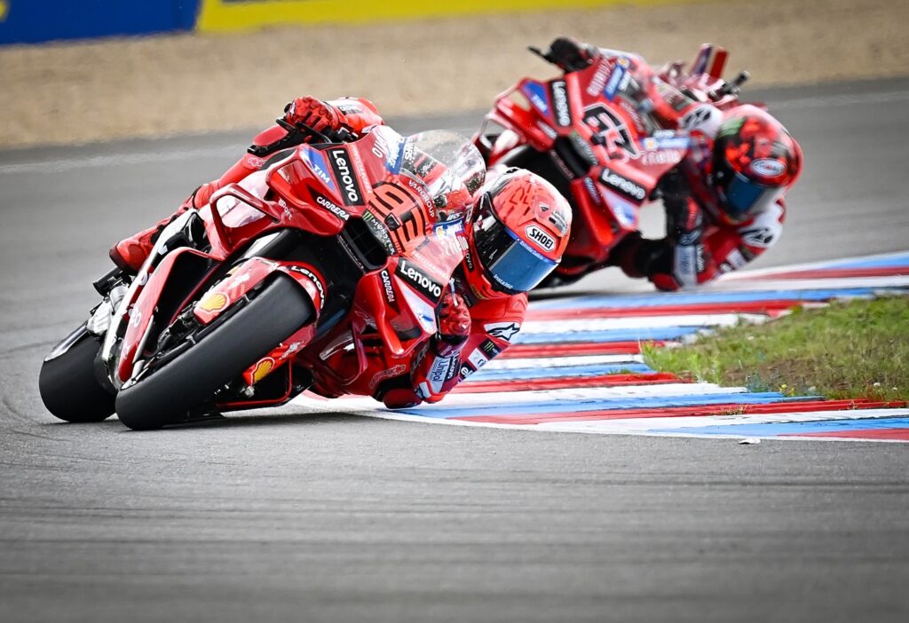 Španec Marc Marquez (Ducati) je zmagovalec sprinterske dirke svetovnega prvenstva v češkem Brnu v elitnem razredu motoGP. Na drugo in tretje mesto sta se uvrstila njegov rojak Pedro Acosta (KTM) in Italijan Enea Bastianini (Tech3 KTM).
