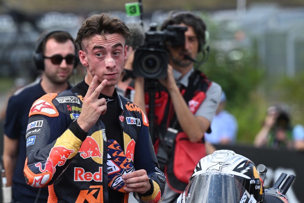 V Brnu, kjer so se dirkači zbrali po petletnem premoru, pa se je v karavano vrnil svetovni prvak Jorge Martin (Aprilia). Osmoljenec sezone, ki je zaradi poškodb med pripravami izpustil uvodne tri dirke, potem pa v Katarju spet padel in prisilno počival do julija, je v kvalifikacijah dosegel deseti čas, na dirki potem nekaj časa vozil v območju točk na sedmem mestu, a do konca zdrsnil iz deseterice in končal kot 11.