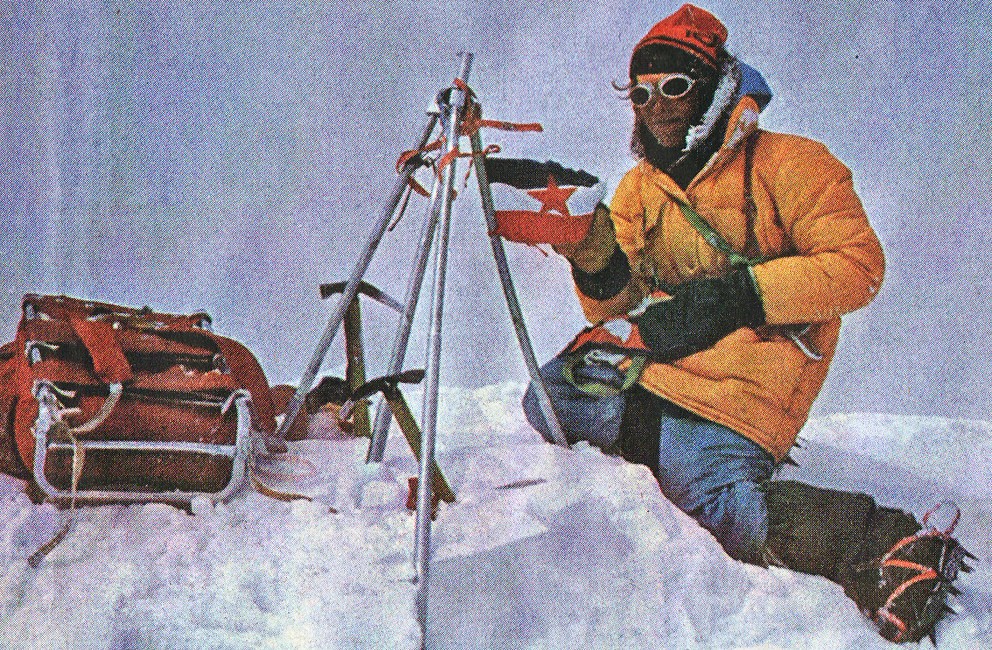Nejc Zaplotnik na vrhu Everesta, 13. maj 1979. Foto: Andrej Štremfelj