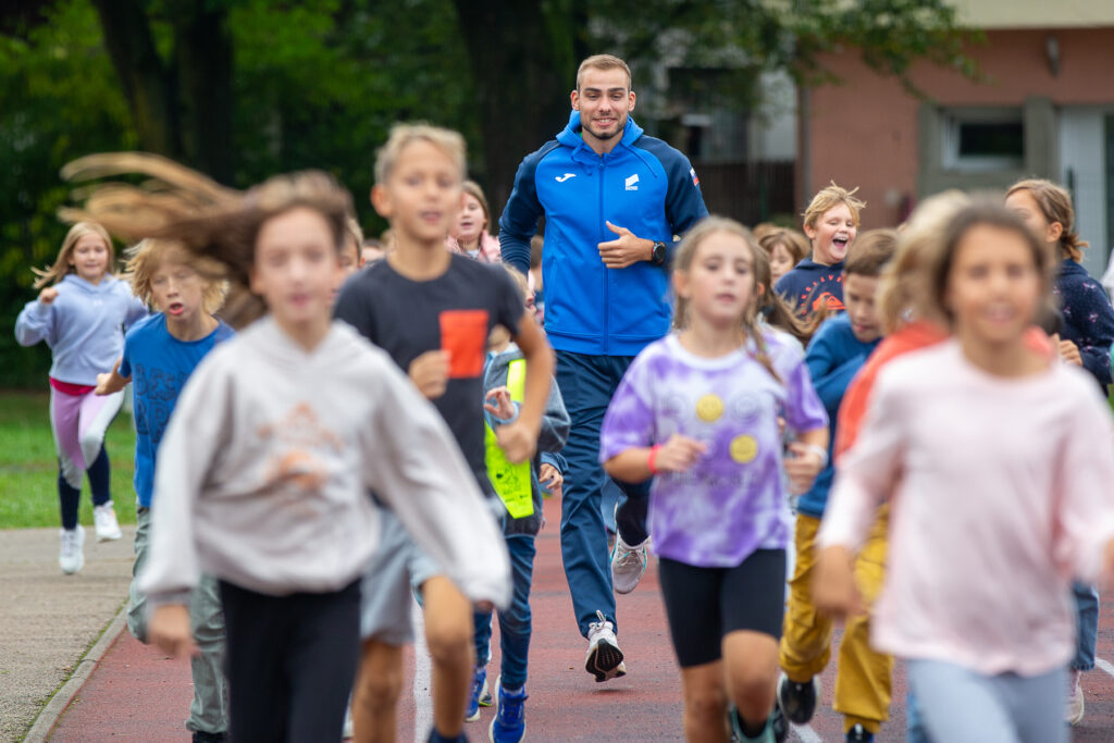 Otroci z OŠ Koseze so tekli tudi z Rokom Ferlanom. FOTO: Peter Kastelic.