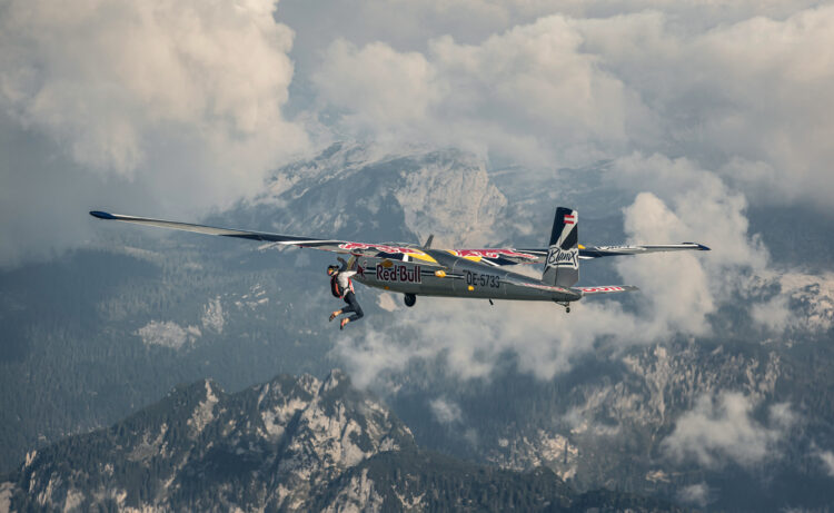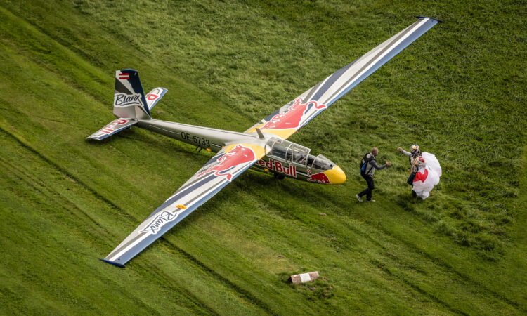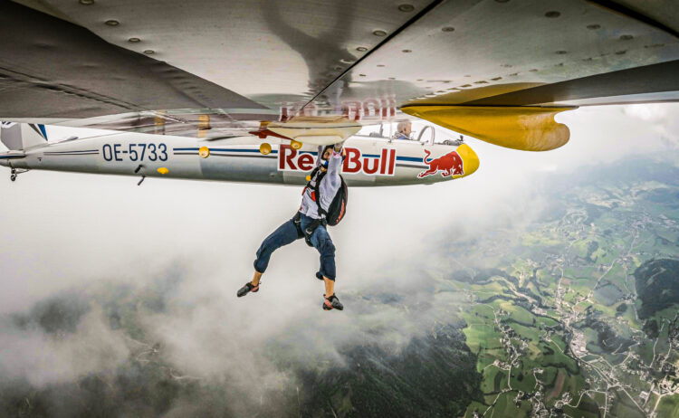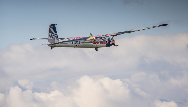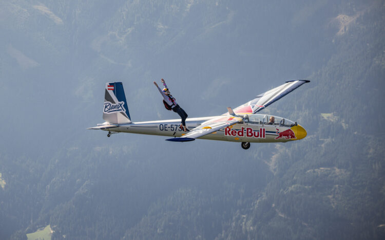 Škofic je ob tem adrenalinskem početju v obliki številke osem preplezal obe krili letala blanik ekipe Red Bull Blanix.
