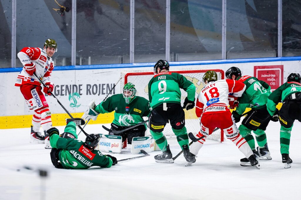 Dvakrat se je sinoči Olimpija na tekmi proti Bolzanu v zavidljivo polnem Tivoliju – zbralo se je več kot 3600 gledalcev – znašla v zaostanku, a se obakrat uspešno vrnila. Tretji gol so prvi dosegli domači, in ko je že zadišalo po zmagi po rednem delu, sta si glavna sodnika Manuel Nikolić in Christian Ofner privoščila napako. Prehitro sta dosodila prepovedani dolgi strel zmajev, po katerem so gostje 16 sekund pred zadnjo sireno izenačili.