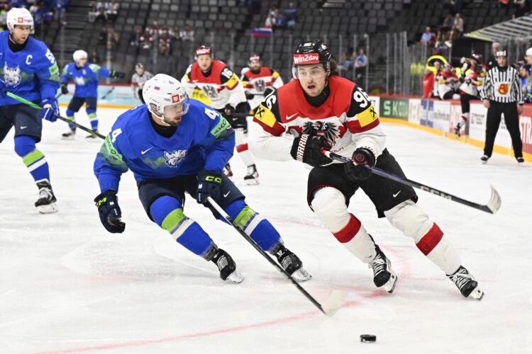 A prvi so se danes veselili Slovenci. Tudi tokrat je obolelega selektorja Eda Terglava na klopi zamenjal pomočnik Andrej Tavželj, začetni pritisk pa so njegovi izbranci prvič strnili med osmo in deseto minuto. Takrat so imeli Avstrijci dve zaporedni kazni, Slovenci pa 27 sekund tudi prednost 5-3. Te sicer niso izkoristili, je pa ob drugi kazni nato z modre črte močno udaril Blaž Gregorc, plošček je na poti do gola zadel enega od tekmecev in spremenil smer ter končal v mreži Davida Kickerta.