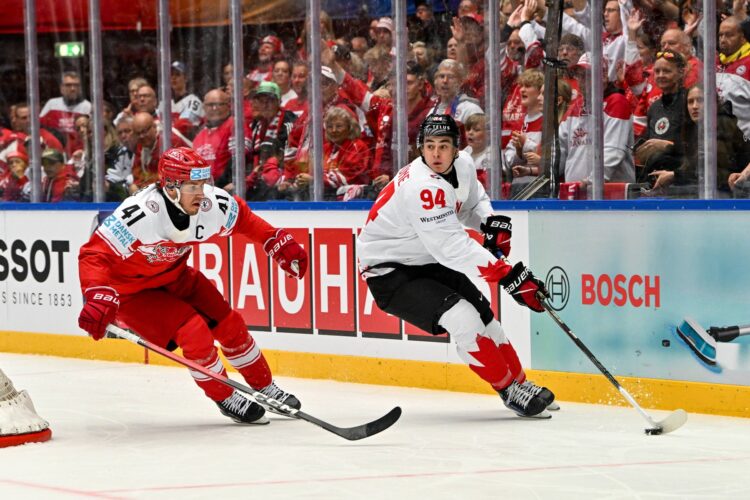 Danska se je danes poslovila od svojega dela tekmovanja, saj se bo svetovno prvenstvo elitne skupine končnico nadaljevalo in končalo samo še v Stockholmu. Ni pa se poslovila od prvenstva, saj je rdeče-bela reprezentanca poskrbela za veliko senzacijo in po izjemno borbeni in garaški predstavi z zadetkom v zadnji minuti premagala Kanado. Junak večera je bil Nick Olsen.