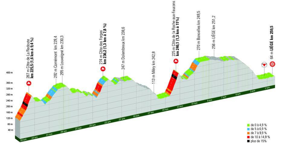 Zadnji dve dirki je Slovenec dobil z napadoma 34 kilometrov pred ciljem na ikonskem Côte de La Redoute. Tudi letos bi ta lahko bil odločilen, čeprav ni zadnji od strmih kratkih klancev, temveč sledita še Côte des Forges in Côte de la Roche-aux-Faucons. Slednji meri le 1,1 kilometra, a znaša povprečni naklon kar 11 odstotkov.