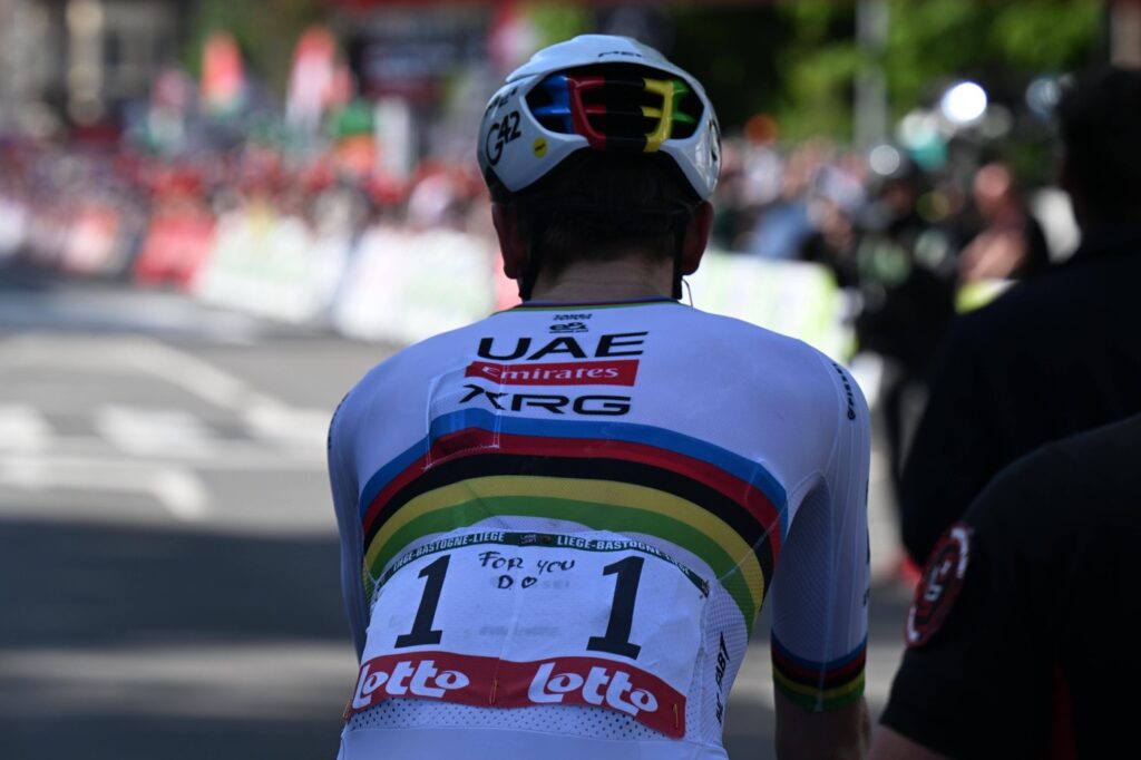 V obeh primerih je njegovo odsotnost z zmagama izkoristil Remco Evenepoel, lani pa je Pogačar še drugič v karieri osvojil La Doyenne. V nedeljo pa je spet kronal vlogo favorita in se približno 35 kilometrov do cilja odpeljal tekmecem ter jim prepustil zgolj boj za drugo mesto. Na obeh zadnjih izvedbah je ob prihodu v cilj s prstom kazal proti nebu, s čimer je ohranjal spomin na preminulo Darjo. Včeraj se ji je poklonil na še poseben način – na startni številki na hrbtu je s flomastrom zapisal Zate, D (ang. For you, D). In dodal še srček.