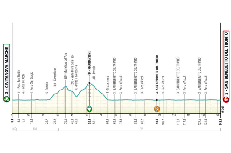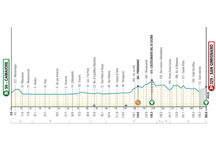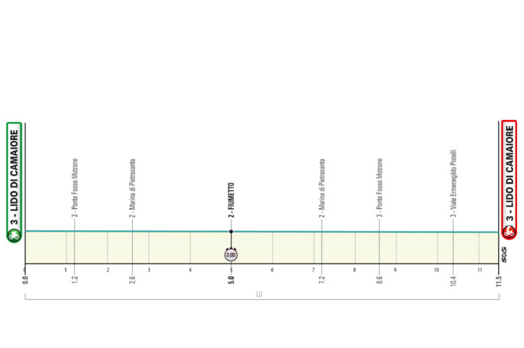 Po današnjem kronometru (11,5 km) v Lidu di Camaioreju čaka kolesarje v torek razgibana etapa do San Gimignana, v sredo ravninska etapa, najtežje pa bodo četrtkova, petkova in sobotna etapa. V nedeljo naj dodatnih razlik pred ciljem v San Benedettu del Trontu ne bi bilo.