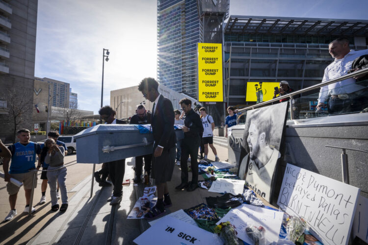 Ti so svojo jezo izrazili z zbiranjem pred dvorano American Airlines Center, kjer so pod kipom Dirka Nowitzkega nosili transparente z napisi, kot so “Prodajte ekipo” in “Najslabša menjava v zgodovini NBA”. Nekateri so celo organizirali simbolični pogreb ekipe, pri čemer so prinesli krsto in predvajali pesem “See You Again” (Se spet vidimo).
