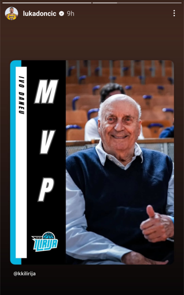 V bran legendi slovenske košarke Ivu Daneuu, ki so ga med drugo tekmo finala lige ABA 2 med Ilirijo in Bosno v Tivoliju na zahtevo sodnikov odstranili z roba igrišča, je stopil tudi Luka Dončić. S preprosto objavo v Instagram zgodbi.