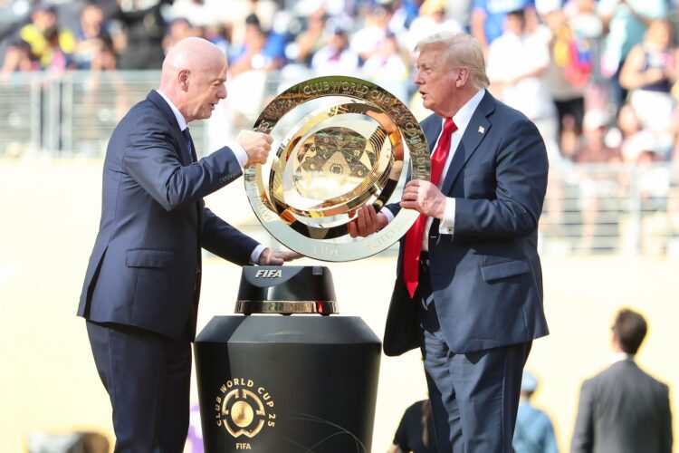 Trump se je finala, ki ga je Chelsea proti PSG dobil s 3:0, udeležil z ženo Melanio, številnimi člani svojega kabineta in predsednikom Fife Giannijem Infantinom. Oba predsednika sta po zaključku tekme pokal izročila kapetanu londonske zasedbe Reeceu Jamesu, pri čemer je Trump kljub očitni zmedenosti nogometašev in Infantinovim prošnjam ostal na zmagovalnem odru.