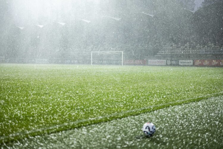 Nogometaše Mure in Aluminija (1:1) je nekaj sekund pred zadnjim sodnikovim žvižgom v garderobe stadiona Fazanerija pregnala toča, že pred tem pa je močan dež dodobra namočil tudi komentatorsko kabino, v kateri je tekmo spremljal naš sodelavec Matic Burazer.