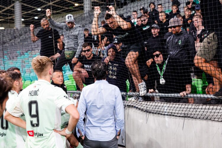 Že pred zadnjim piskom je s tribun v angleškem jeziku odmevalo: “Pojdi nazaj na Portugalsko.” Ko je Alen Borošak označil zaključek obračuna, so se s tribun zaslišali žvižgi lastnim nogometašem, ki so jih člani navijaške skupine Green Dragons celo pozvali na zagovor. Ob tem se je z glavne tribune zaslišalo še skandiranje imena nekdanjega stratega Olimpije Victorja Snacheza.