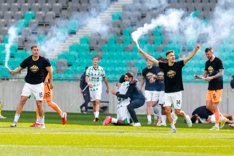 Veselje in slavje nogometašev Olimpije po osvojenem naslovu v Prvi ligi Telemach za sezono 2024/2025 je bilo razumljivo glasno, prešerno in razposajeno.