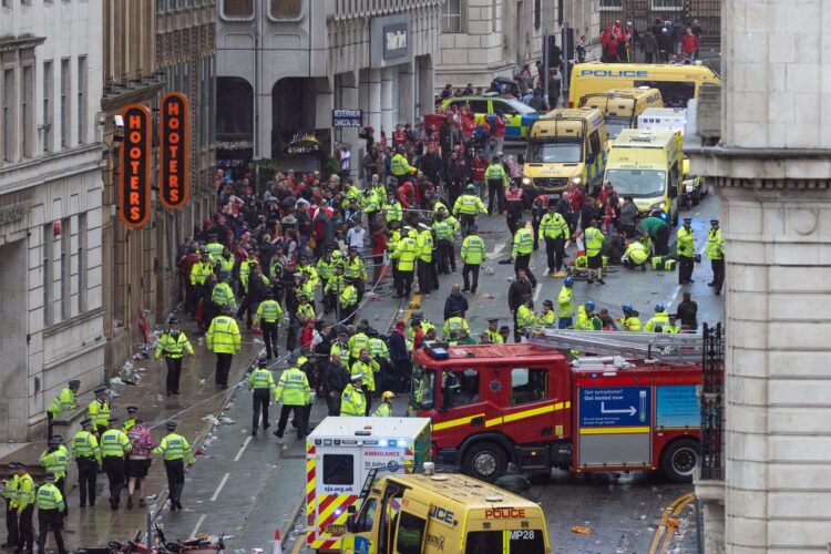Na ulicah Liverpoola je v ponedeljek zvečer kljub močnemu dežju na tisoče ljudi proslavljalo osvojitev naslova prvaka, ko je v množico na ulici Water Street zapeljal avtomobil. Le nekaj minut pred tem je tam mimo peljal avtobus z nogometno ekipo.