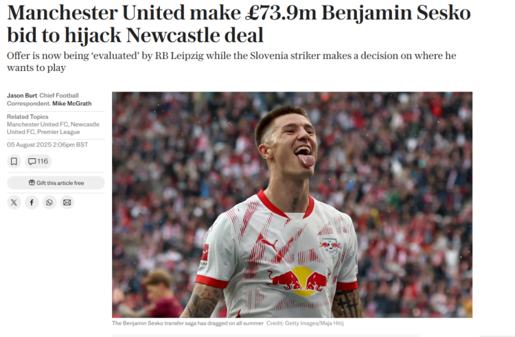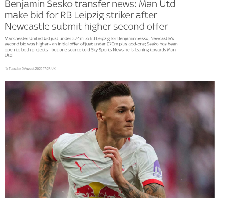 Daily Mail poroča celo, da so nekatere stavniške hiše potem, ko je ponudbo poslal še Manchester United, zaprle vse stave na morebiten prestop Benjamina Šeška.