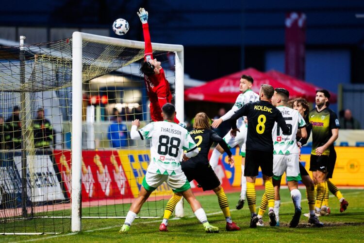 Še bližje zadetku je bil novopečeni avstrijski reprezentant v 43. minuti, ko je z volejem s sedmih metrov zadel stičišče prečke in vranice. Še pred koncem polčasa je moral posredovati tudi Matevž Vidovšek, potem ko je v bližini gola do strela prišel Jaka Kolenc, a vanj vložil premalo moči.