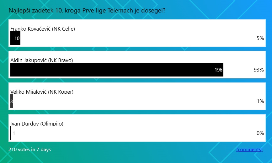 Po odigranem 10. krogu Prve lige Telemach lahko znova izberete najlepši zadetek kroga. V ospredje seveda stopa mojstrovina Aldina Jakupovića, a ob njem se za vašo pozornost potegujejo tudi Franko Kovačević, Veljko Mijailović in Ivan Durdov. Pričakovano je zmagal igralec Brava.