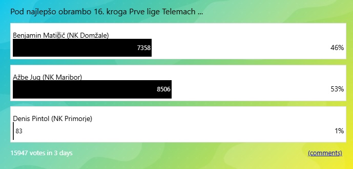 V 16. krogu Prve lige Telemach je v rubriki Union #NajObrambo največ glasov prejel vratar Maribor Ažbe Jug.
