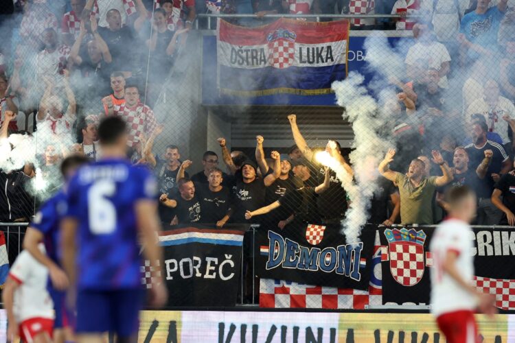 Po izgredih, ki so sledili po koncu nedeljske nogometne tekme lige narodov med Hrvaško in Poljsko (1:0) na stadionu Opus Arena v Osijeku, je lokalna policija pridržala več deset ljudi. Po koncu tekme je med odhodom množice več deset tujih navijačev napadlo domače, nato pa so se spopadli s policijo.