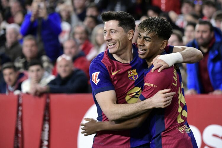 Robert Lewandowski se je tudi tokrat vpisal med strelce, Lamine Yamal se ni. FOTO: Profimedia.