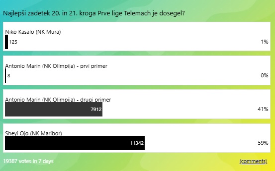 V 20. in 21. krogu Prve lige Telemach ste za najlepši zadetek izbrali mojstrovino člana NK Maribora Sheyia Oja. Prejel je več kot 11 tisoč glasov.
