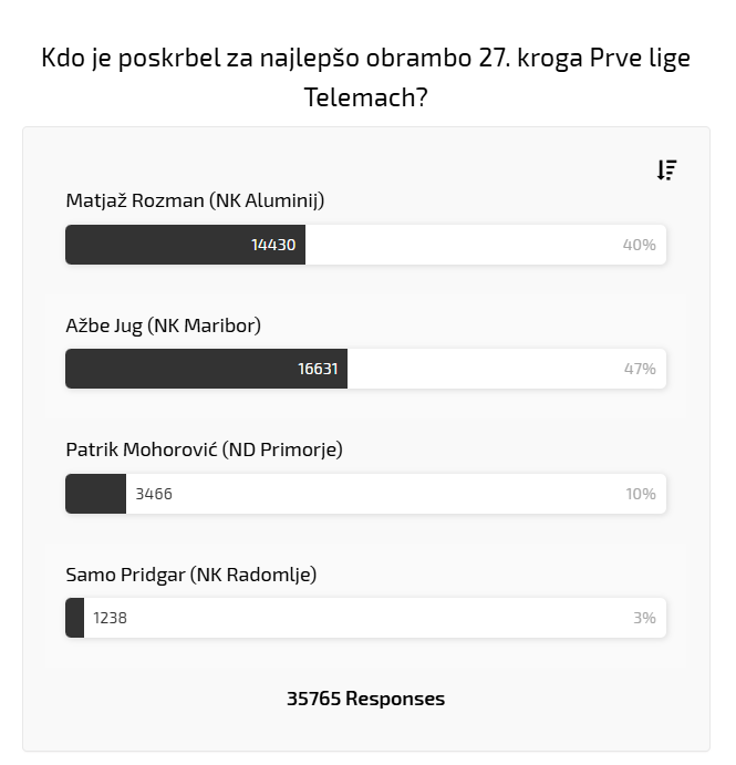 V 27. krogu Prve lige Telemach smo videli tudi kar nekaj odličnih obramb. V rubriki Union #NajObramba ste lahko izbirali med štirimi ter na koncu za le nekaj glasov dali prednost čuvaju mreže vijoličastih.
