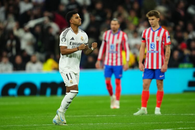 Real je povedel že v četrti minuti, ko je Rodrygo slalomiral skozi Atleticovo obrambo, na koncu pa s 15 metrov z natančnim strelom matiral Oblaka. Rodrygo je kmalu zatem spet povzročil težave Javiju Galanu, tudi Oblak je moral enkrat resneje posredovati, v 32. minuti pa je udaril v tej sezoni razpoloženi Atleticov Argentinec Julian Alvarez (22 golov v vseh tekmovanjih), ki je z levega roba kazenskega prostora natančno meril v nasprotno malo mrežico za 1:1.
