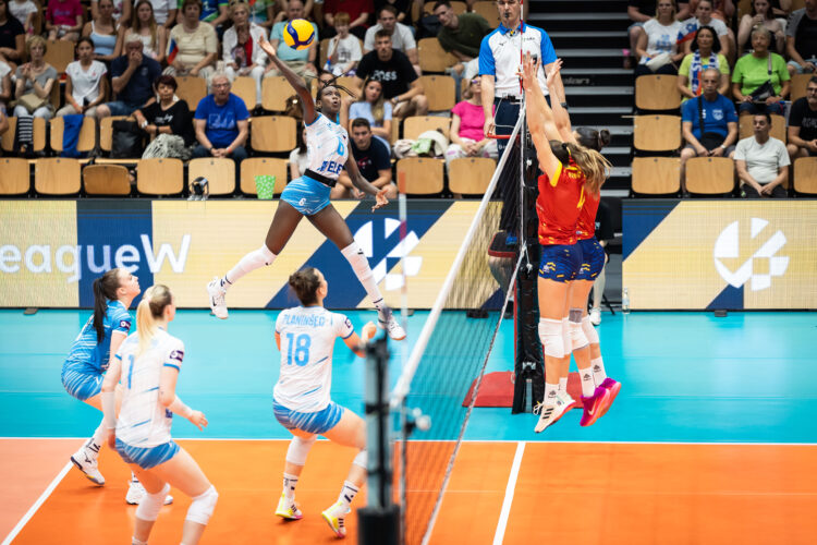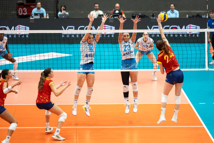 Slovenska ženska odbojkarska reprezentanca je na drugi tekmi domačega turnirja v Velenju in skupno zadnji, šesti v ligaškem delu evropske zlate lige, premagala Španijo s 3:1 (-19, 22, 18, 22). Slovenske odbojkarice so kljub četrti zmagi ostale brez napredovanja na zaključni turnir.