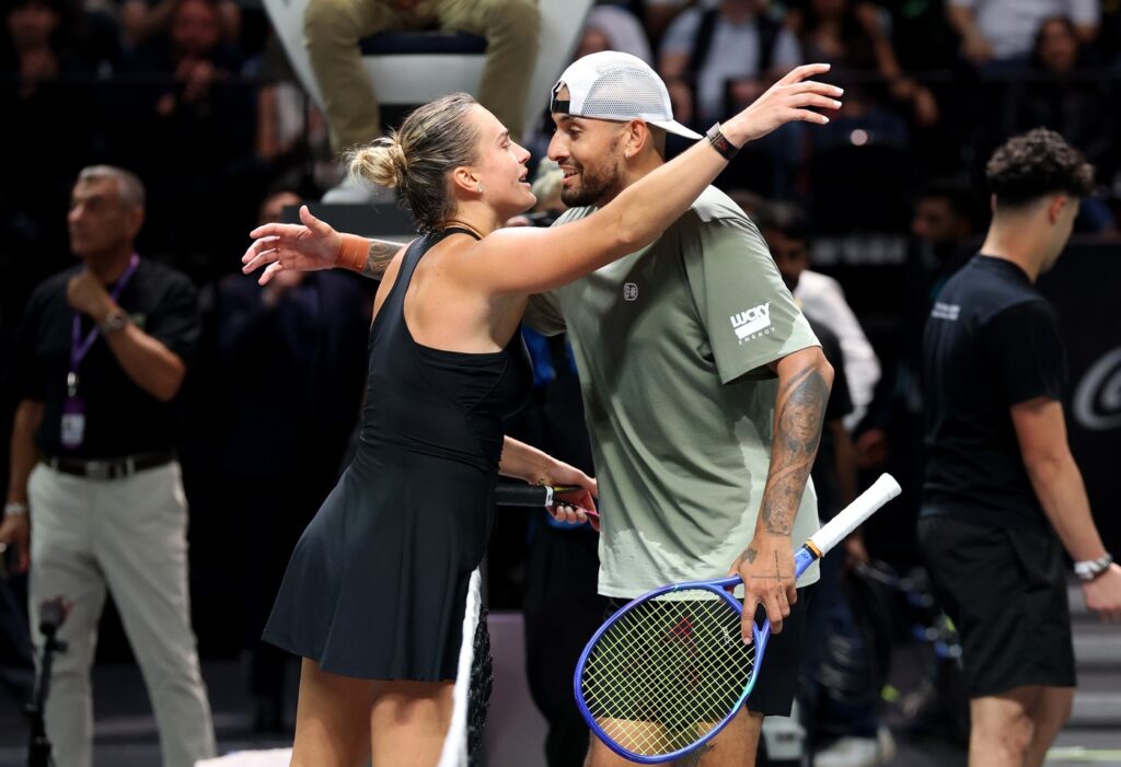 Avstralec Nick Kyrgios je v novem poglavju tako imenovane bitke spolov dobil obračun s prirejenimi pravili proti Belorusinji Arini Sabalenka s 6:3, 6:3.