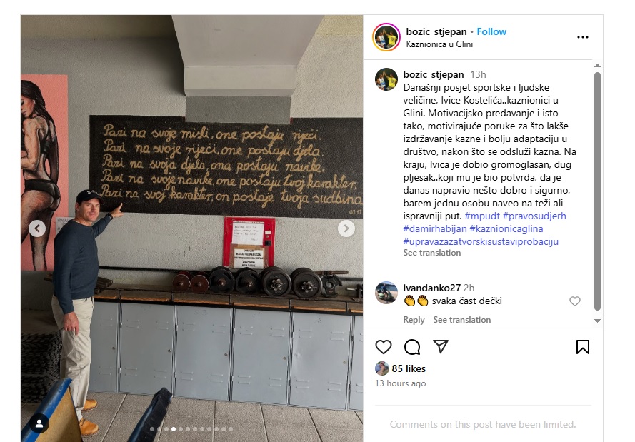 Za organizacijo dogodka se je nekdanji dobitnik velikega kristalnega globusa (2011) dogovoril s hrvaškim boksarjem Stjepanom Božićem, ki je na Instagramu delil fotografije in videoposnetke ter pripisal: “Motivacijsko predavanje in motivacijska sporočila za čim lažje prestajanje kazni in prilagoditev na okolje po odsluženem zaporu. Ivica je na koncu dobil glasen in dolg aplavz, kar je potrditev, da je danes storil dobro delo in vsaj eni osebi pomagal na težjo, toda vsekakor pravo pot.”