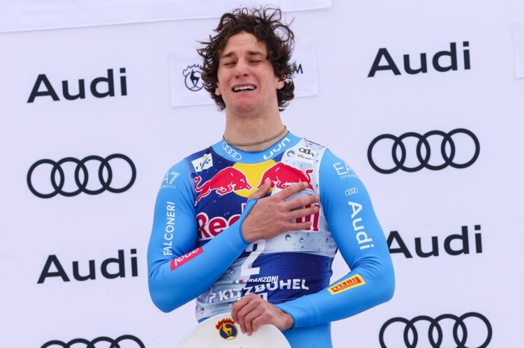 Zlati gams, prva smukaška zmaga v karieri in dobrih 100 tisoč evrov. Toda novi zvezdnik smučarskega svetovnega pokala Giovanni Franzoni je bil v Kitzbühelu z mislimi povsem drugje.