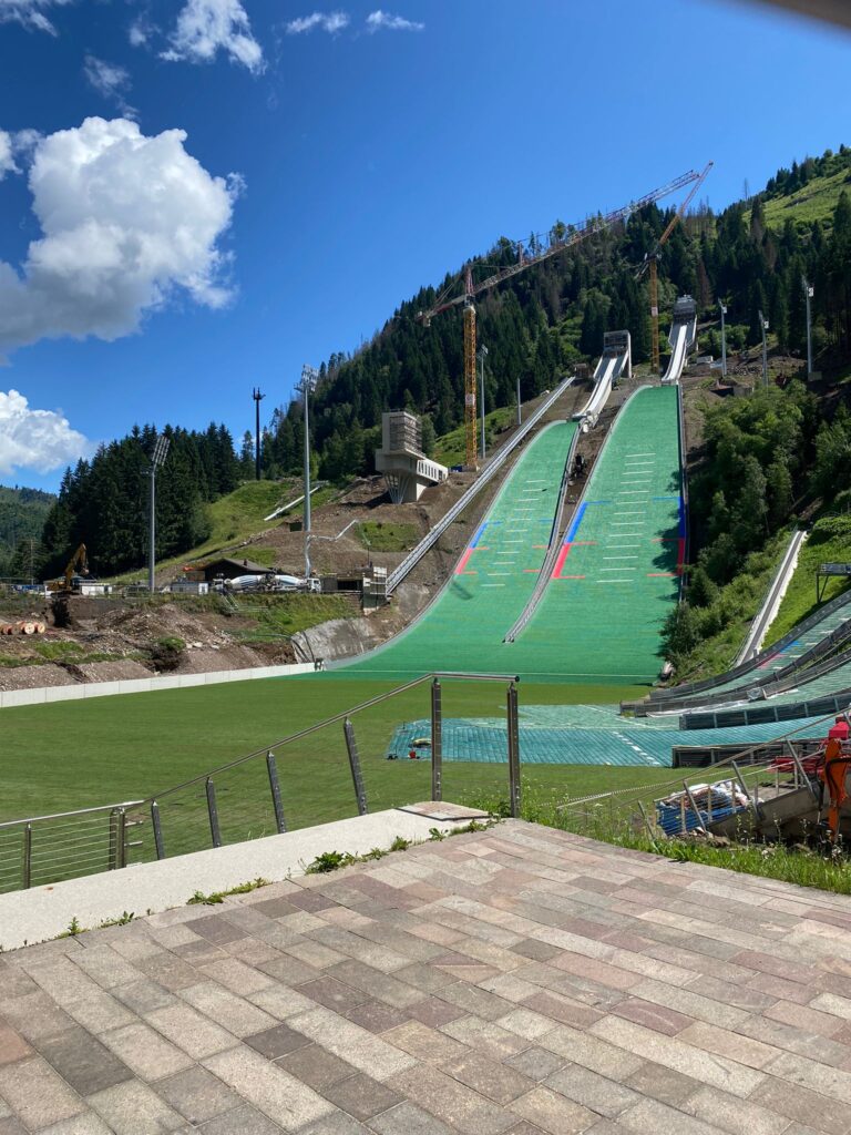 Dokončanje del, vključno s preostalimi zunanjimi elementi (stolpi za tekmovalce, sodniški stolpi in 680 kubičnih metrov velik rezervoar za zasneževanje), pa je predvideno za september 2025.