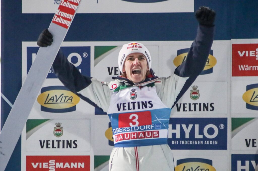 Vodilni tekmovalec svetovnega pokala je bil na skakalnici pod Senčno goro na uvodnem dejanju 74. turneje štirih skakalnic razred zase. Kot edini je (v obeh serijah) preskočil 140-metrsko znamko, s čimer je končal slovensko prekletstvo na veliki napravi na prvem prizorišču prvega vrhunca sezone.