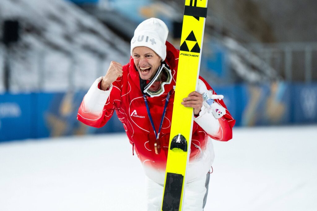 34-letnik iz Horwa je narisal nasmešek na obraz slovenskega trenerja Bineta Norčiča, ki od začetka sezone vodi švicarsko reprezentanco. Gorenjec na trenerski tribuni po drugem skoku ni skrival navdušenja.