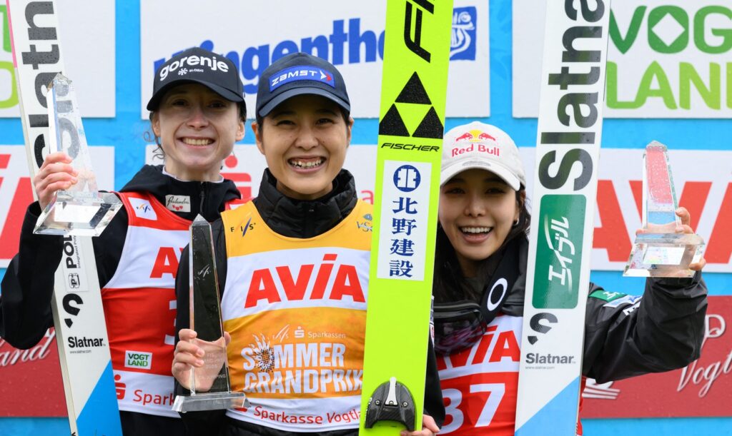 Slovenija v ženskem delu konkurence ostaja pri treh skupnih zmagah v grand prixu. Dvakrat (2021 in 2022) je to uspelo upokojeni Urši Križnar (takrat Bogataj), nepozabna pa je predvsem sezona 2023, ko so Slovenke slavile na vseh sedmih tekmah – Niki Vodan, ki se po operaciji kolena odločno vrača med najboljše, je stoodstotni niz preprečila rojakinja Ema Klinec.