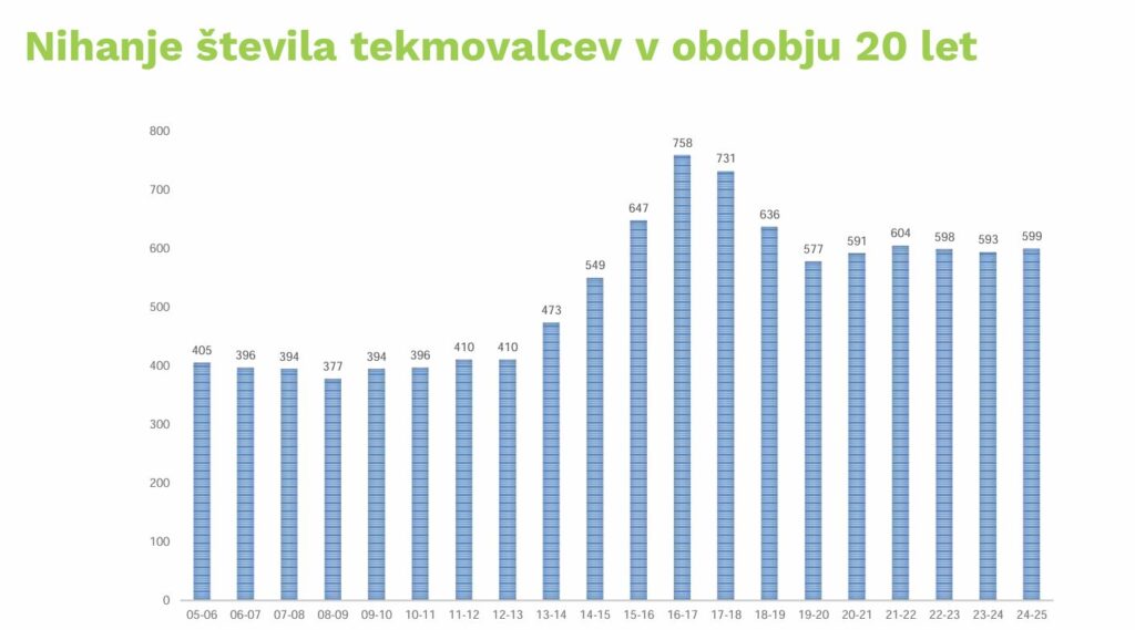 “Ko smo videli številke, smo se odločili nekaj storiti. Če smo imeli v preteklosti na kategorijo med 30 in 35 tekmovalcev, so zdaj te številke precej nižje, okoli 25 do 27. Bolje da se prej reagira in se številke dvignejo nazaj na raven, ki si jo želimo. To so številke, ki so bile dosežene po sijajni sezoni Petra Prevca in še leto po tem,” poudarja Pogorelčnik.
