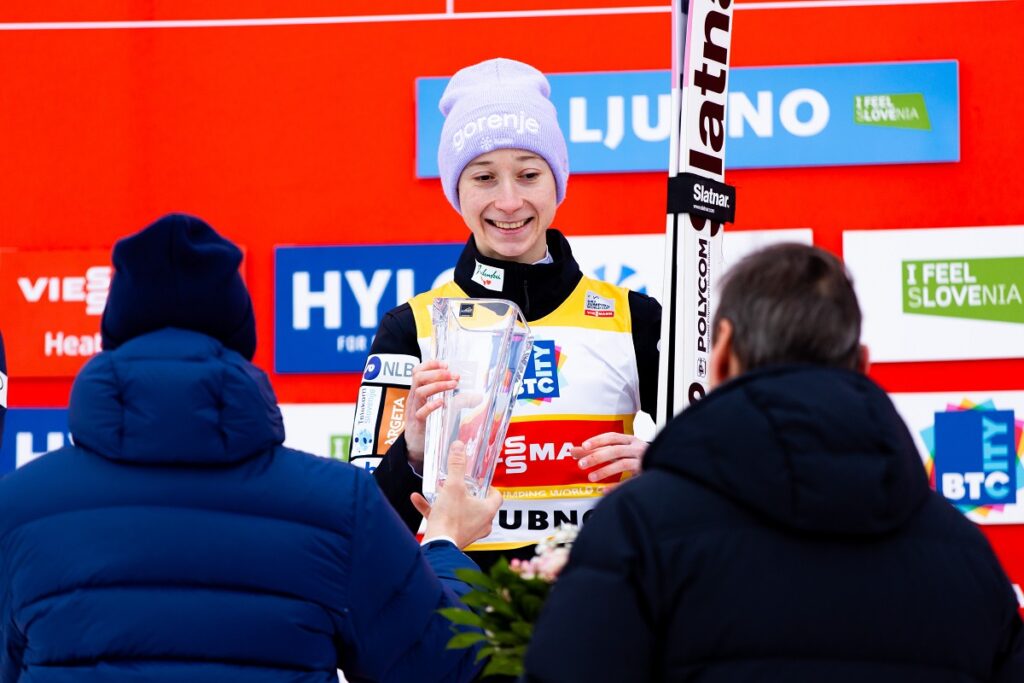 Čeprav sta ji že ob lanski zmagi na Ljubnem, tako kot tudi letos, pokal podelila oče Božidar in brat Peter, se tega še ni navadila. “Nisem še navajena, to je tak zelo poseben in hecen občutek. Vse se mi zdi zelo domače,” je povedala.