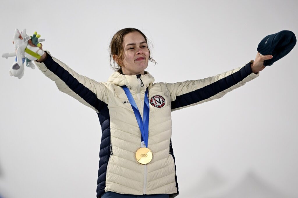 Že omenjena Anna Odine Stroem je postala prva smučarska skakalka, ki je na olimpijskih igrah osvojila dve posamični zlati kolajni. Da je ta dosežek še toliko bolj poseben, je 27-letnici iz Alte uspel na enih igrah, ob premieri tekme na veliki napravi.