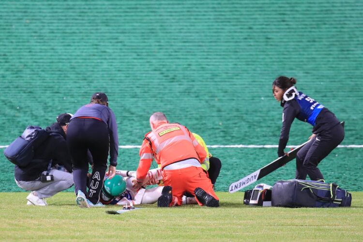 Skupna zmagovalka svetovnega pokala v sezoni 2022/23 se je po padcu na srednji skakalnici prijela za levo koleno, v televizijskem prenosu pa so se slišali kriki bolečine, so zapisali pri avstrijski tiskovni agenciji APA.